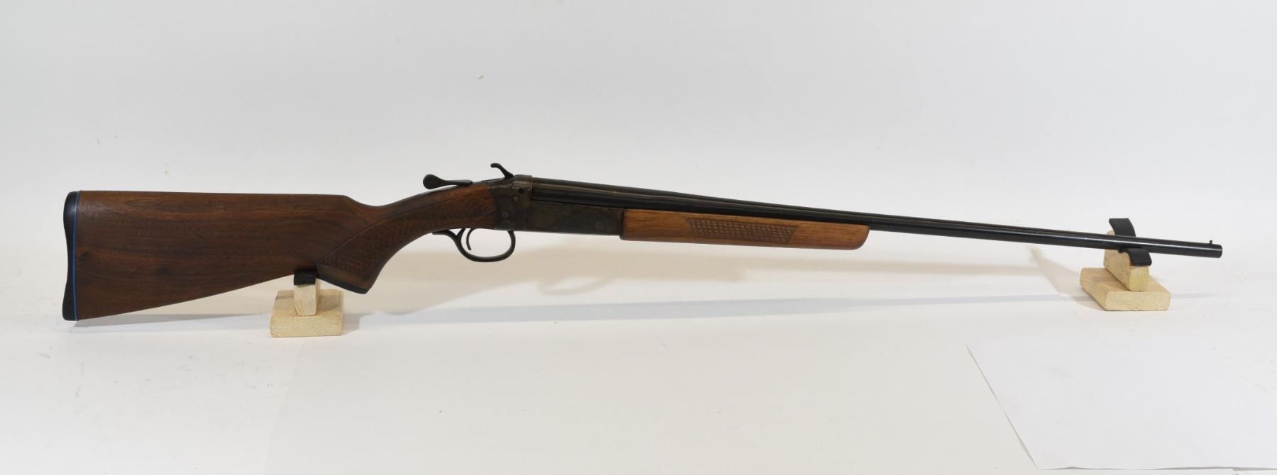 Non-restricted, single shot, 410, 3", 26" full choke barrel, SN 86712. Wood is good and has been checkered. Bluing has a few small rust spots and is showing some grey in a couple of spots. Case hardening on receiver is good. Bore is very good.