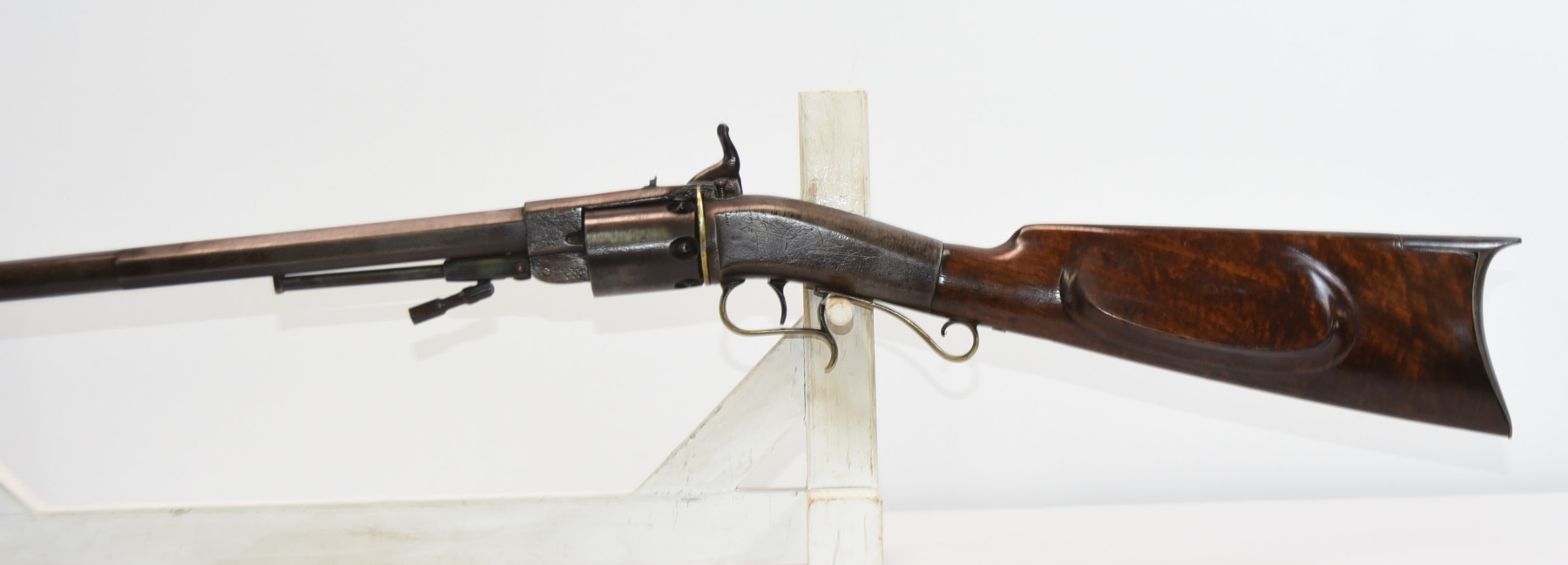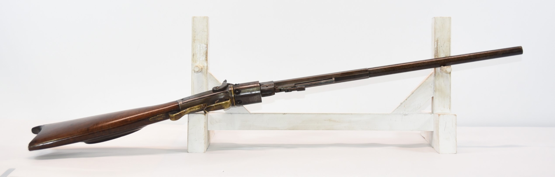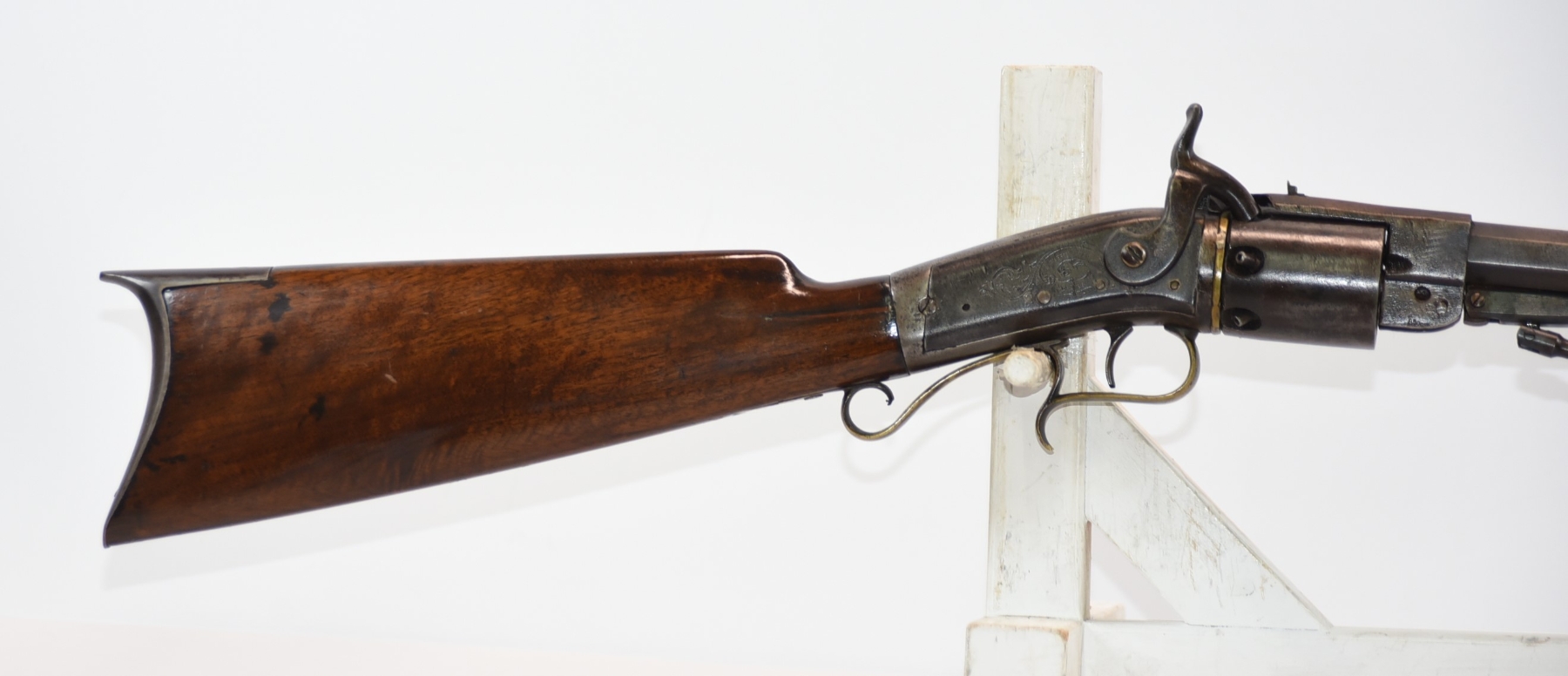 Rare Antique James Warner Solid Top Frame Revolving Rifle In .40 Percussion Caliber