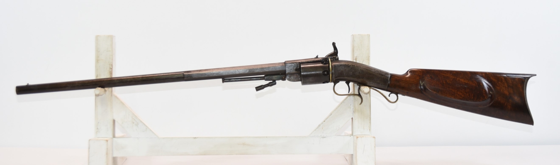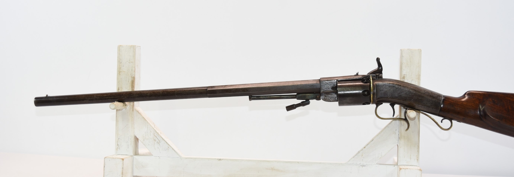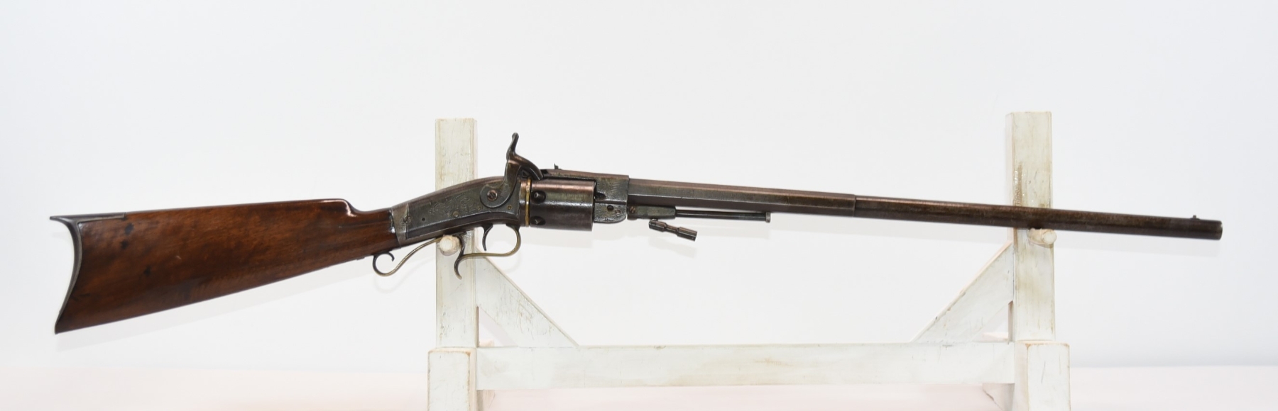Rare Antique James Warner Solid Top Frame Revolving Rifle In .40 Percussion Caliber