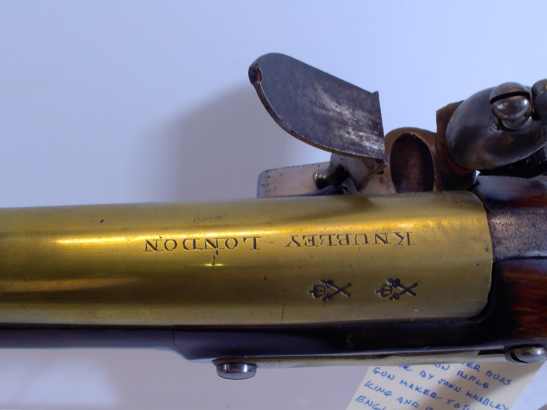 "John Knubley began his career as a gunmaker in the county of Yorkshire in the 1760s before moving his business to London where he is recorded at two addresses on Charing Cross between 1786 and 1794. He became gunmaker to the Prince of Wales, the Duke of Clarence and Prince Edward, and was a contractor to Ordnance between 1790 and 1794. Upon his death in 1795 his business was taken over by Samuel Brunn and continued trading as Knubley & Co. or Knubley & Brunn until 1797." Ancestry Guns.com