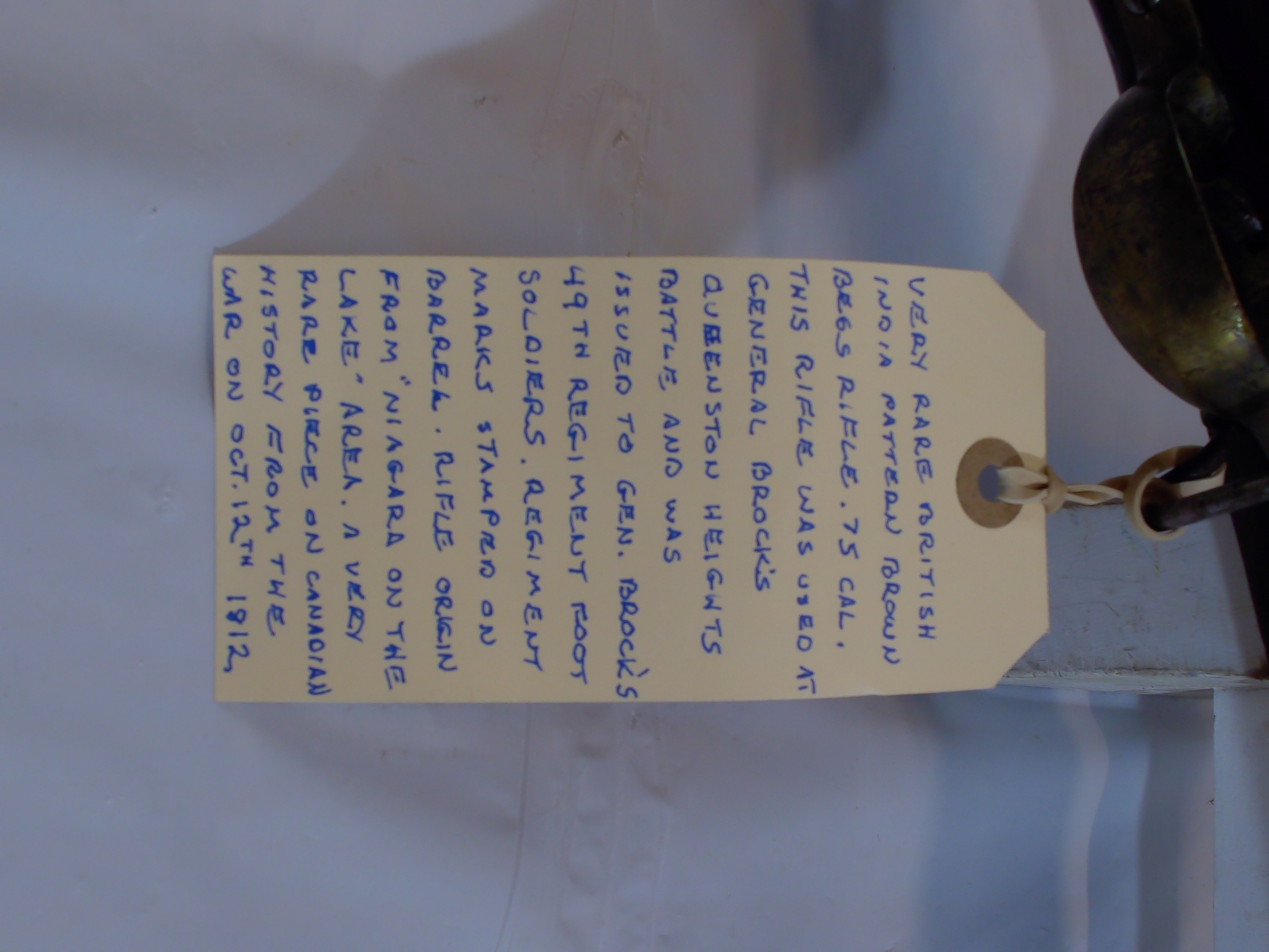 Consignor states: This rifle was used at General Brock's Queenstown Heights Battle and was issued to Gen. Brock's 49th Regiment foot soldiers. Regiment marks stamped on barrel. Rifle origin from "Niagara On The Lake" area. A very rare piece of Canadian history from the war on Oct 12 1812.