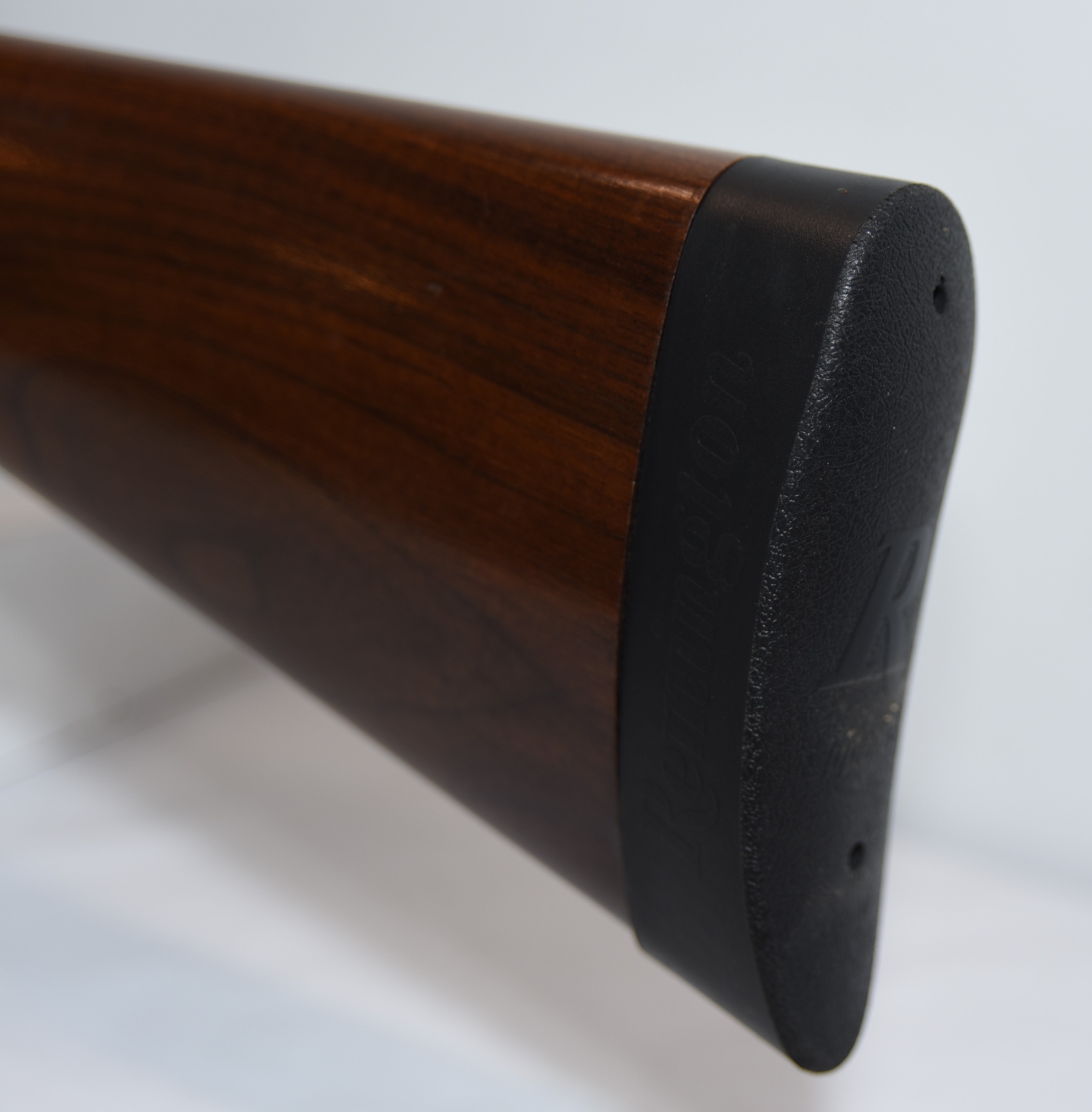 Wood stock shows light scratches and scuffs, finish wear specks, few light dings; condition is very good.