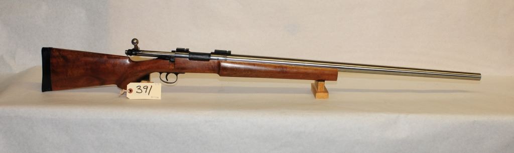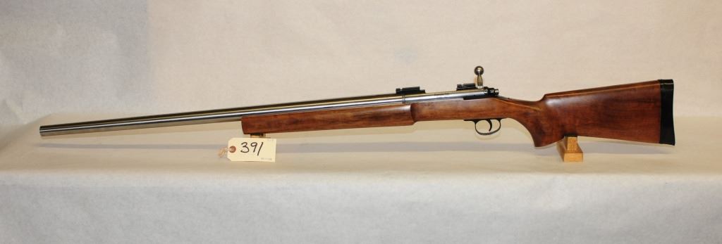 Non-restricted, single shot, 223 Rem, 30" stainless bull barrel, SN 354572. Wood has some handling marks, metal finish and bore very good.