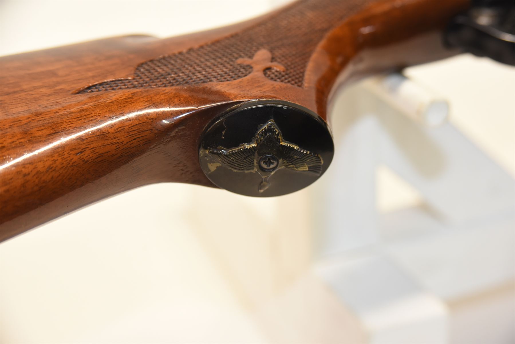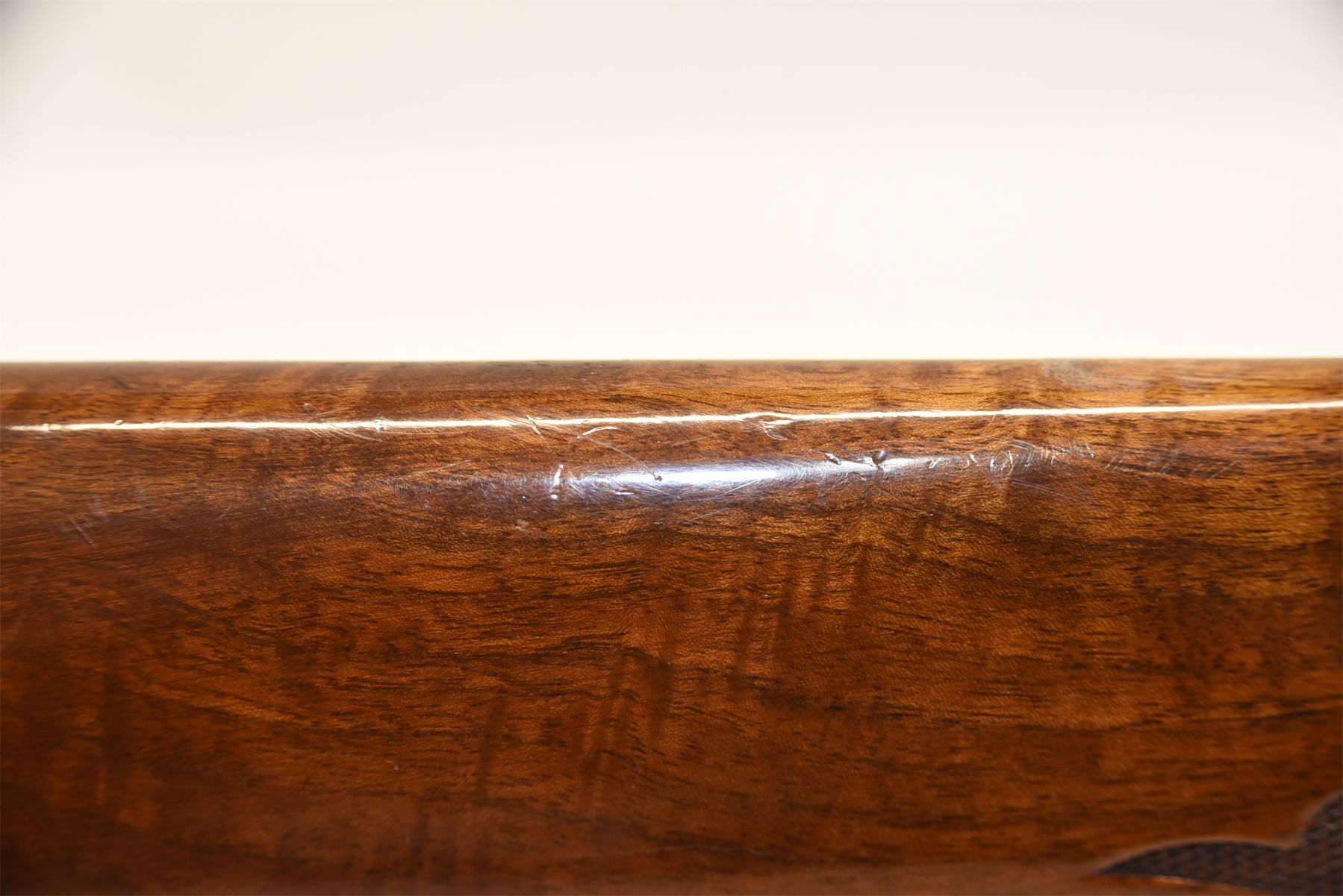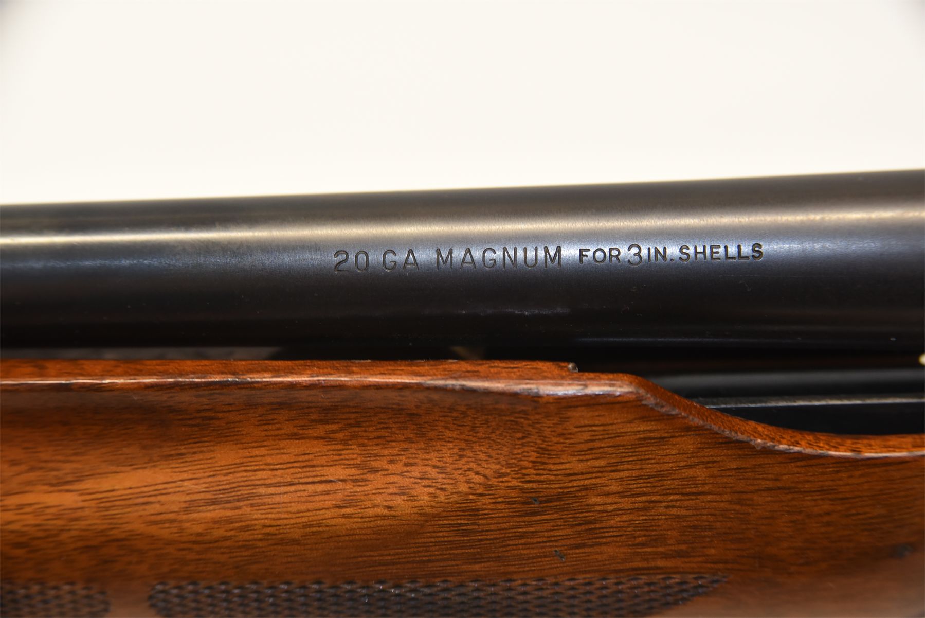 Barrel has been cut. Wood has scuffs, scratches, and dents. Condition is good. Bluing has wear in areas, patina present, scratches, and scuffs. Condition is good. Bore is excellent.