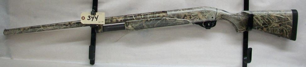 Non-Restricted, pump action, 12 gauge 3 1/2 inch chamber, 28 inch vented rob barrel with a removable modified rem choke installed, Ser# AB900965A, synthetic stock has camo finish loss, overall camo finish on entire