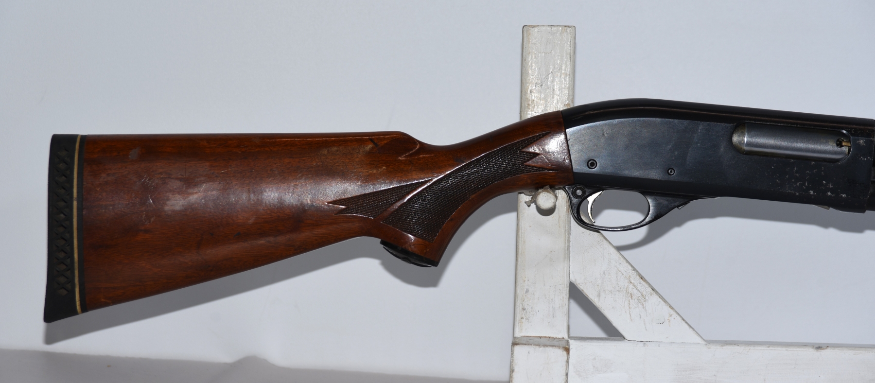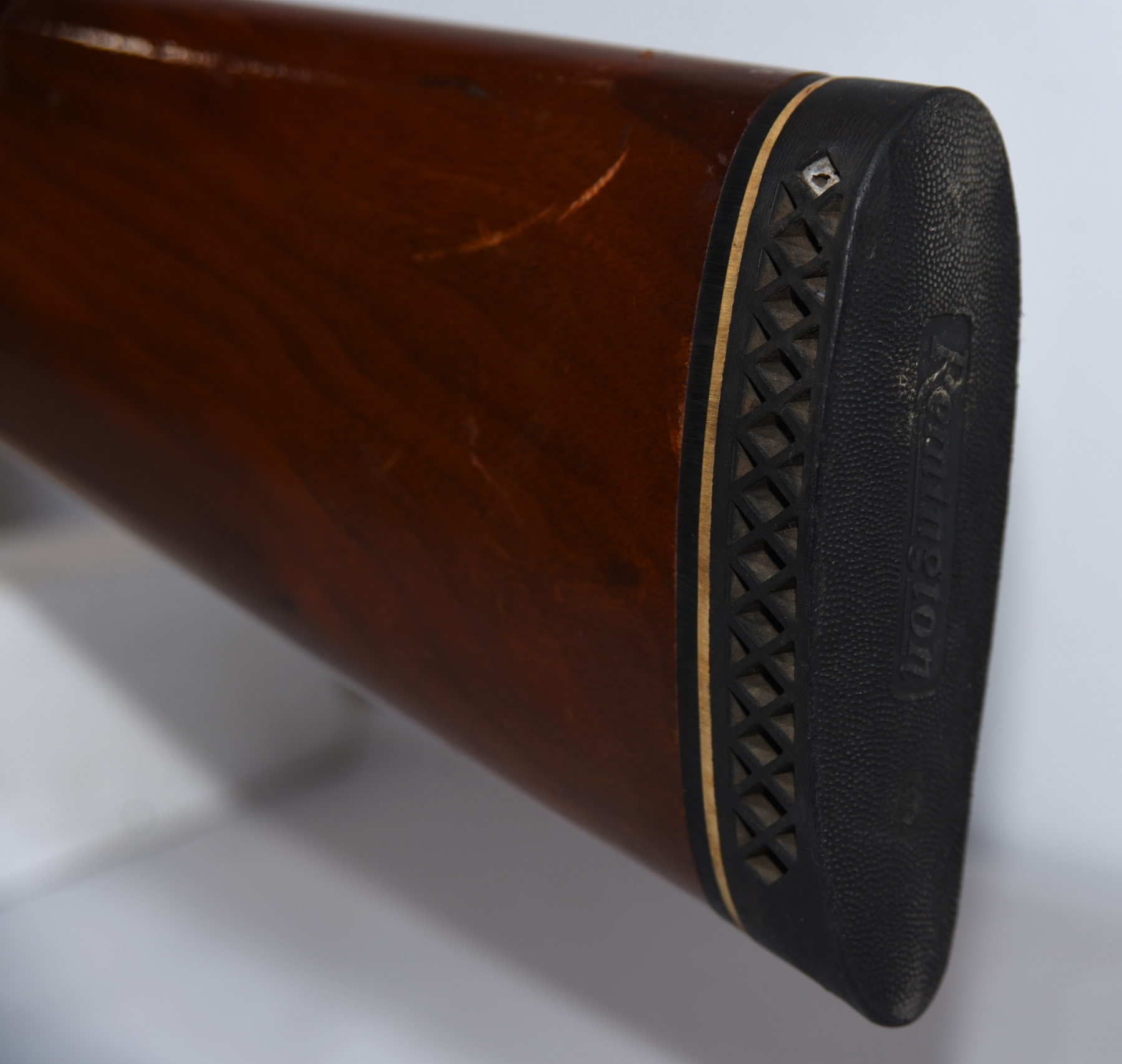 Wood stock shows scratches, scuffs, light dents, finish wear; condition is good.