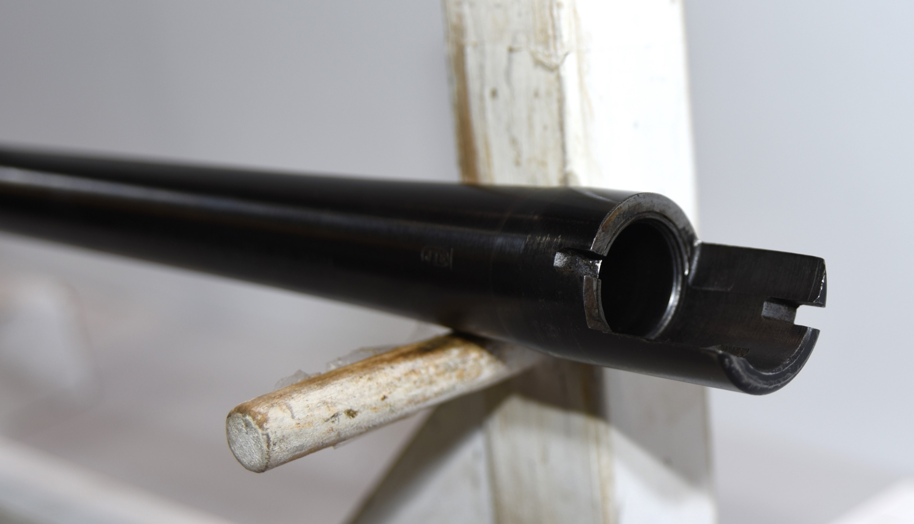Metal finish shows light scuffs, scratches some finish wear; condition is good. Bore is shiny, smooth in very good condition.