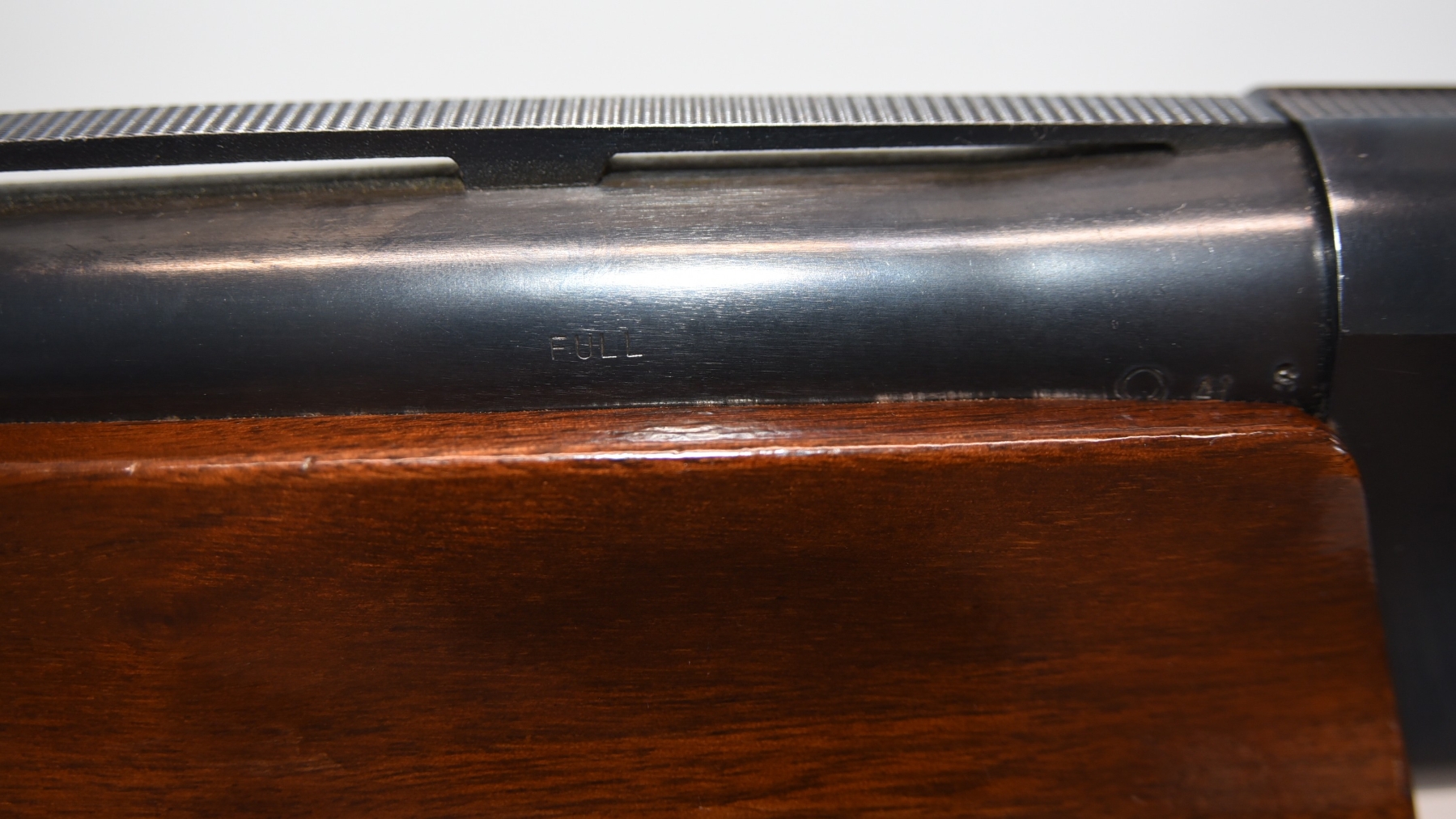 Wood stock shows few light scratches and scuffs, a light scrape at the heel; condition is very good.