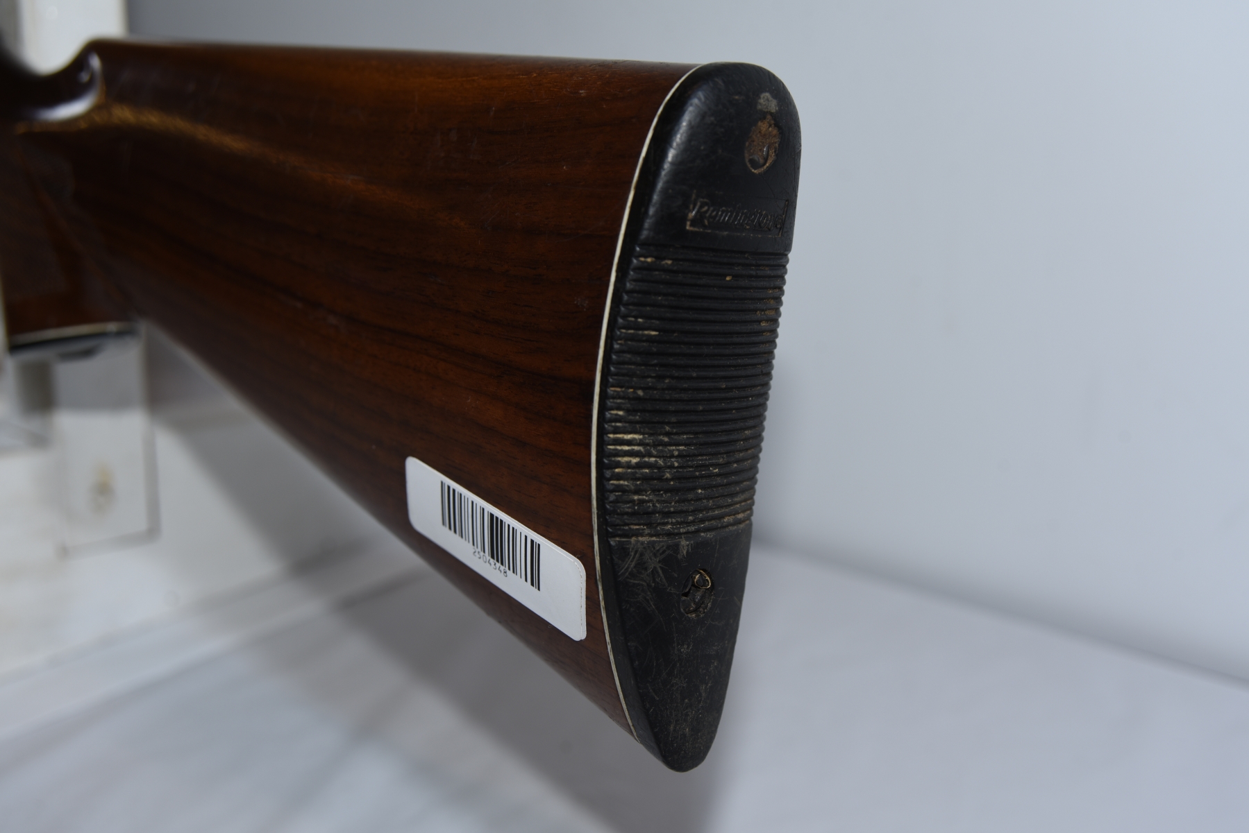 Wood stock shows a large crack on the right side of the forearm, scratches, scuffs, light dents; condition is good.