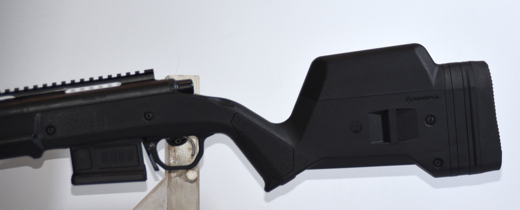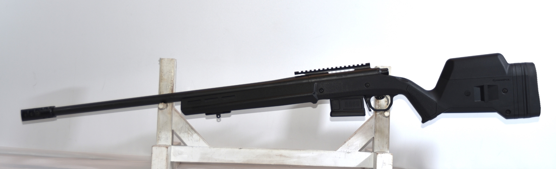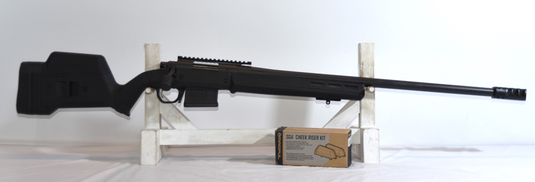 Firearm has weaver Picatinny rail, Magpul stock, Magpul magazine, KRG Bolt Lift, Grizzly Gun works muzzle brake and extra cheek risers.