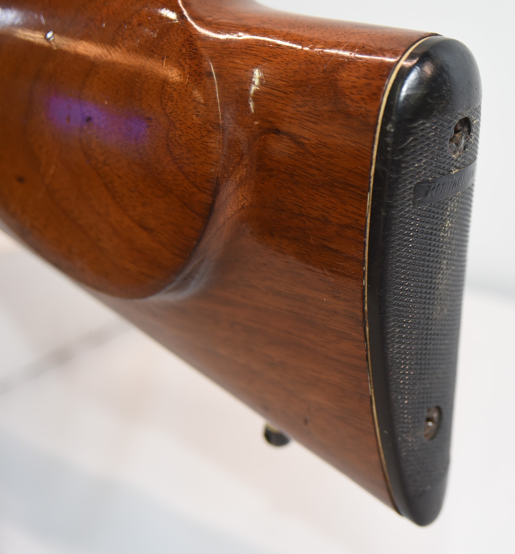 Wood stock shows scratches, scuffs, light dents, finish wear spots; condition is good.