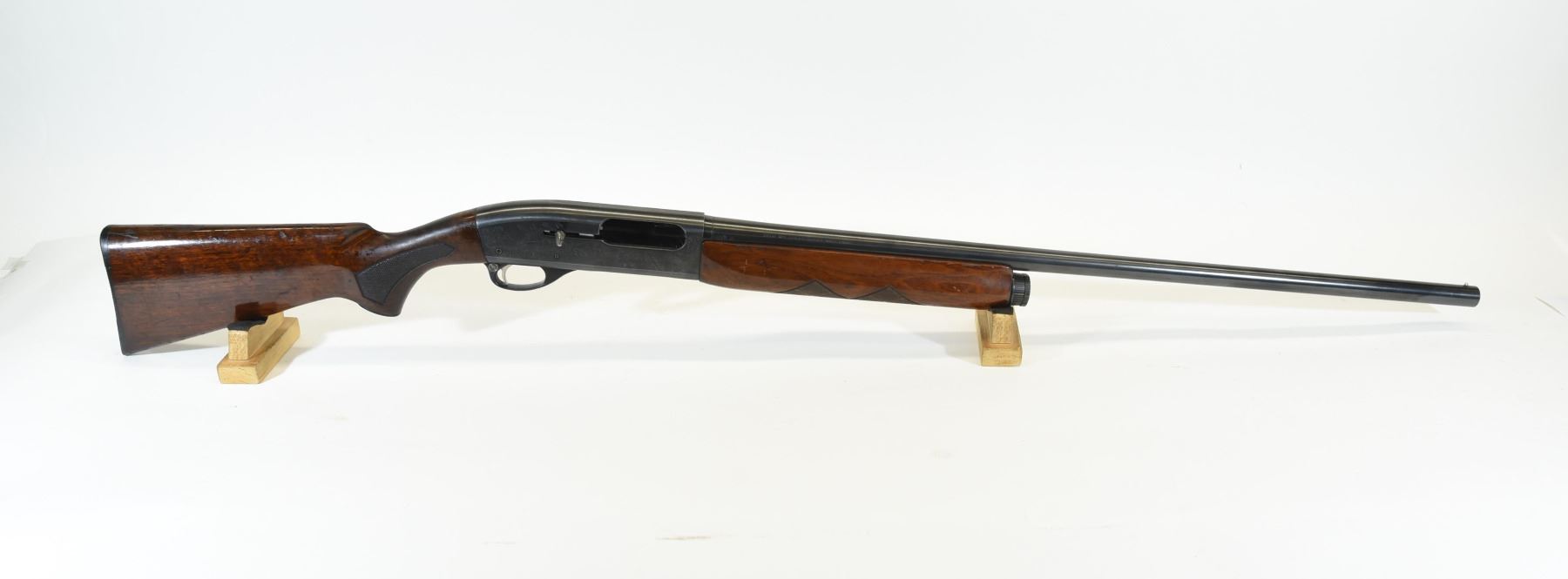 Non-restricted, semi auto, 12ga x 2 3/4", 30" barrel with fixed full choke, SN 194572V. Wood has some dents and scratches, finish is lifting, bluing faded with some pit marks, bore excellent.