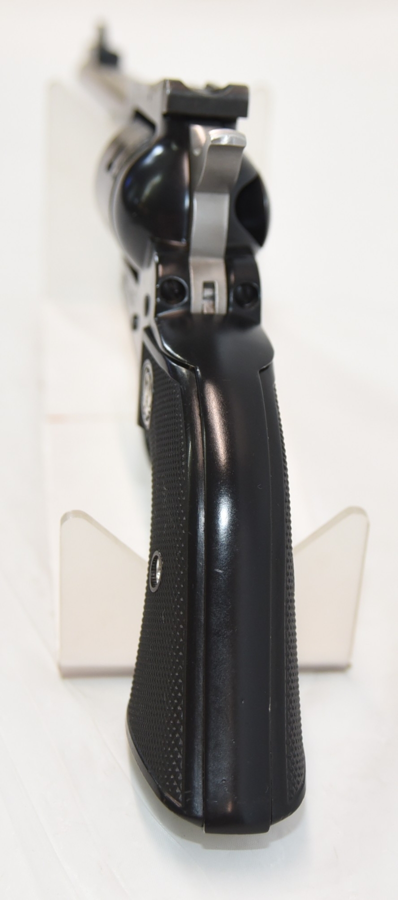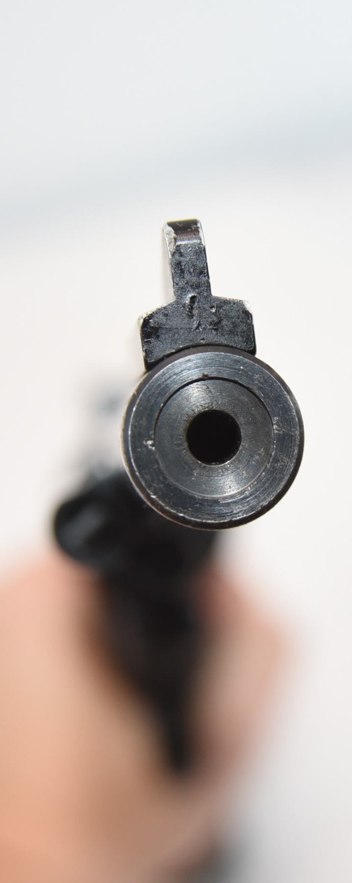 Firearm is missing rear sight blade.