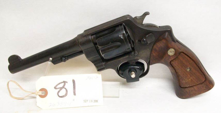 Restricted, Revolver, 45 auto, 140mm barrel, SN 209823, Grips have a few wear marks and light scratch, bluing is turning brown, bore is good