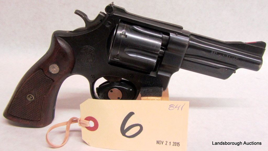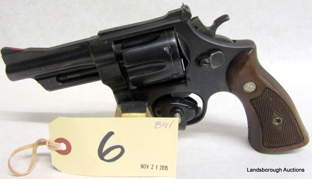 PROHIBITED, REVOLVER, 357 MAGNUM, 102MM BARREL, SN S133787. WOOD GRIPS HAVE A COUPLE MARKS, BLUING HAS SOME SCRATCHES, BORE VERY GOOD.