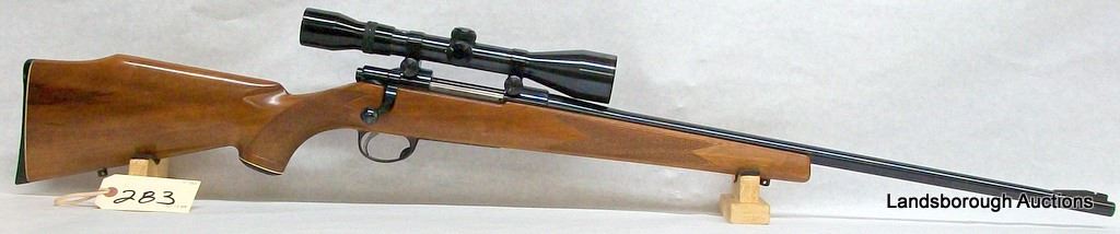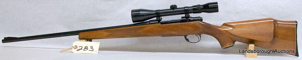 NON-RESTRICTED, BOLT ACTION, 243 REM, 23" BARREL, SN 17299. WOOD HAS SOME HANDLING MARKS, BLUING HAS SOME PITTING ON BARREL, OBJECTIVE END OF SCOPE HAS LIGHT PITTING, BORE EXCELLENT. COMES WITH HELIA 6 S2 SCOPE.