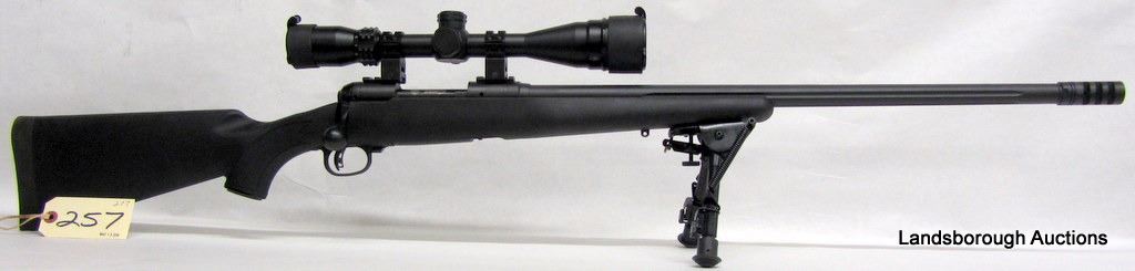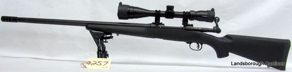 NON-RESTRICTED, BOLT ACTION, 223 REM, 26" BULL BARREL, SN J245486. SYNTHETIC STOCK, MATTE METAL FINISH VERY GOOD, BORE EXCELLENT. COMES WITH UNKNOWN 6-24 X 50AO SCOPE, BIPOD, ACCU TRIGGER, MUZZLE BRAKE, , AIR GLIDE TRAVEL CASE.