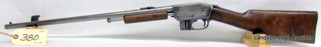 NON-RESTRICTED, PUMP ACTION, 22 CAL, 20" BARREL, SN 105514A. WOOD HAS CHIP MISSING BEISDE UPPER TANG, BLUING IS GONE, BORE HAS PITTING, RIFLING BARLEY VISIBLE.