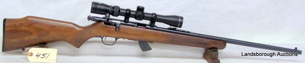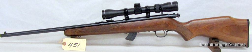 NON-RESTRICTED, BOLT ACTION, 22LR, 21" BARREL, SN 0975056. WOOD HAS A FEW LIGHT MARKS, BLUING VERY GOOD, BORE EXCELLENT. COMES WITH TASCO 3-9 X 32 SCOPE.