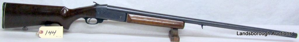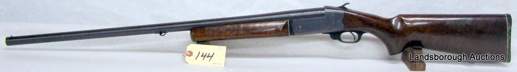 NON-RESTRICTED, SINGLE SHOT, 12GA X 2 3/4", 30" BARREL WITH FIXED FULL CHOKE, SN 421730. WOOD HAS NUMEROUS LIGHT SCRATCHES, BLUING PITTED ON BARREL, WORN UNDER RECEIVER, BORE VERY GOOD. PLASTIC FOREARM JOINT IS CHIPPED.