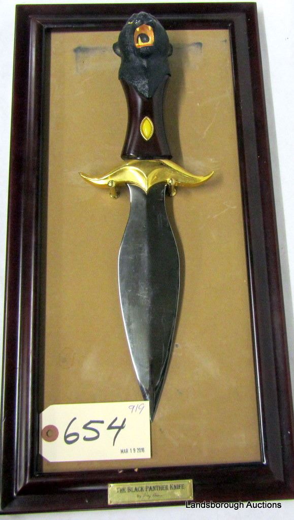CAL 5MM SN 86911 NEEDS REPAIR. COMES WITH BLACK PANTHER KNIFE ON DISPLAY BOARD.