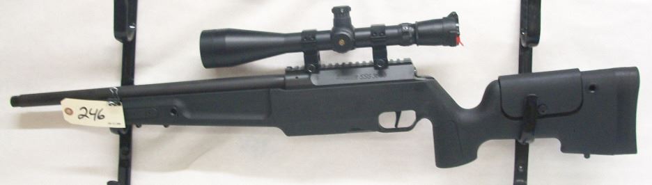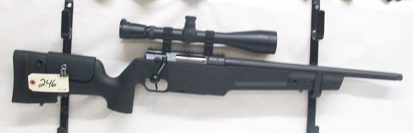 NON-RESTRICTED, BOLT ACTION, .308 WIN., 18 1/2" BARREL, SN# Y34551, SYNTHETIC STOCK IN GOOD SHAPE, BLUING IS GOOD, BORE IS VERY GOOD, COMES WITH A LEUPOLD MARK 4 8.5 - 25 X 50 SCOPE