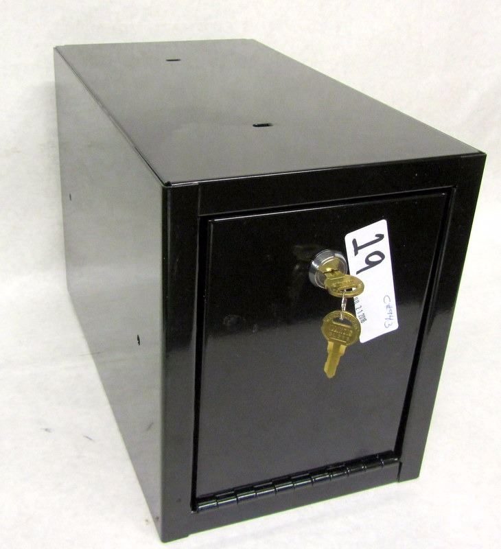STACK-ON SAFE, WITH TWO KEYS. MEASURES 13 X 9 X 7 INCHES