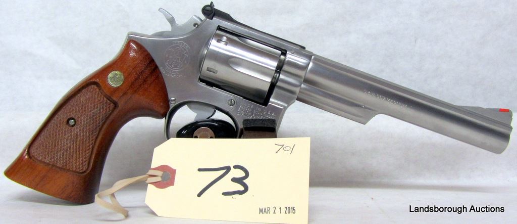 RESTRICTED, REVOLVER, 357 MAGNUM, 152MM BARREL, SN 70K3201. WOOD GRIPS, STAINLESS FRAME AND BORE VERY GOOD CONDITION.