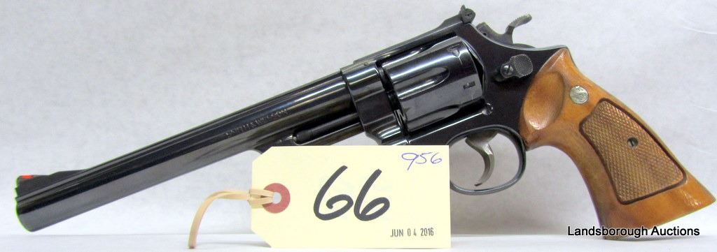 RESTRICTED, REVOLVER, 44 MAGNUM, 213MM BARREL, SN N322973. GRIPS AND BLUING HAS A COUPLE MARKS, BORE GOOD.