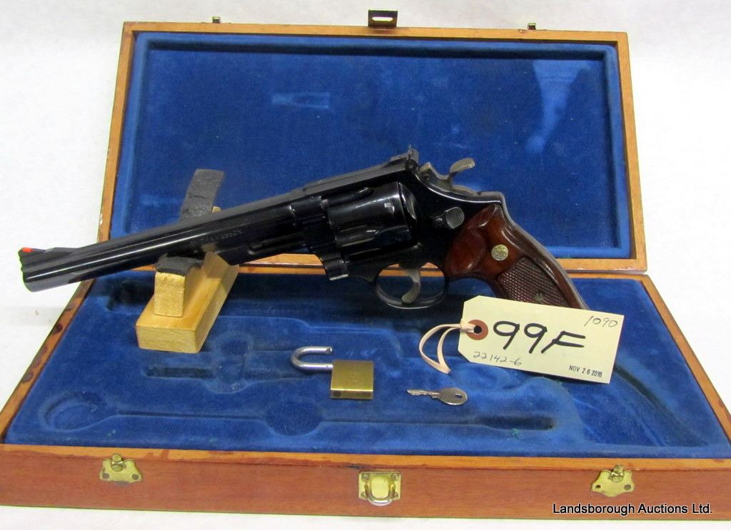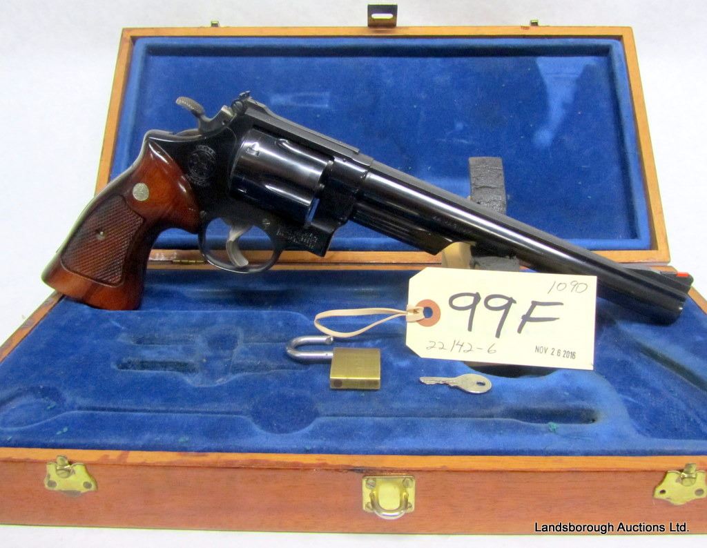 RESTRICTED, REVOLVER, 44 MAGNUM, 213MM BARREL, SN N336589. OTHER THAN A LITTLE WEAR AT MUZZLE, VERY GOOD CONDITION. COMES WITH LOCKABLE BOX.