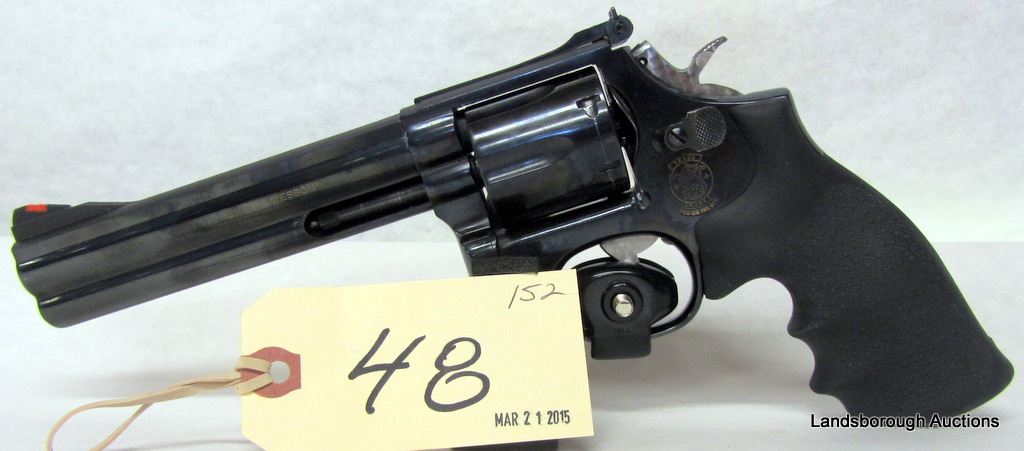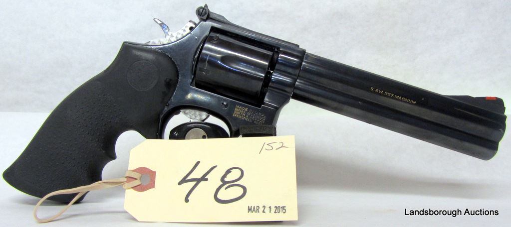 RESTRICTED, REVOLVER, 357 MAGNUM, 152MM BARREL, SN AVE7117. HOGUE RUBBER GRIPS HAVE SOME MARKS, BLUING HAS A COUPLE SCRATCHES, BORE VERY GOOD.