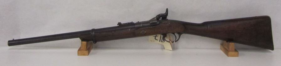 NON-RESTRICTED, 18" BARREL, WOOD HAS TYPICAL AGE MARKS AND BRUISES WITH NO CRACKS, BLUEING AQUIRED PATINA WITH SMALL PITTING AND MARKS CONSISTENT WITH AGE, BORE IN VERY GOOD CONDITION WITH PROMINENT RIFLING.