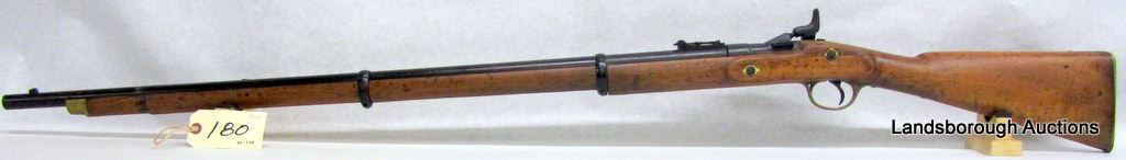 NON-RESTRICTED, SINGLE SHOT, 577 SNIDER, 36" BARREL, SN NONE. WOOD HAS NUMEROUS DENTS AND MARKS, BLUING IS BROWN, BORE HAS PITTING WITH PROMINENT RIFLING. MISSING CLEANING ROD AND FRONT BAND.