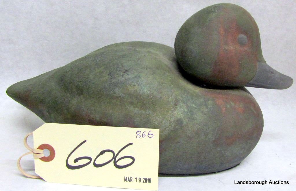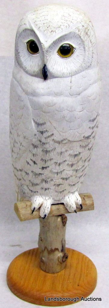 SNOWY OWL CARVING AND METAL DUCK