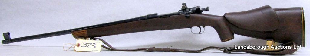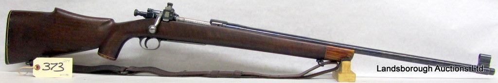 NON-RESTRICTED, BOLT ACTION, 30-06 SPRG, 24" BARREL, SN 1063635. WOOD VERY GOOD, BLUING HAS A FEW MARKS, BORE EXCELLENT. COMES WITH REDFIELD REAR PEEP AND EXTRA STOCK.