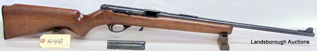 NON-RESTRICTED, SEMI AUTO, 22LR, 21" BARREL, SN A551059. WOOD HAS SOME LIGHT MARKS, BLUING VERY GOOD, BORE EXCELLENT.