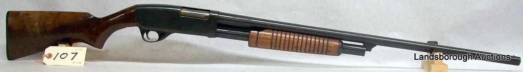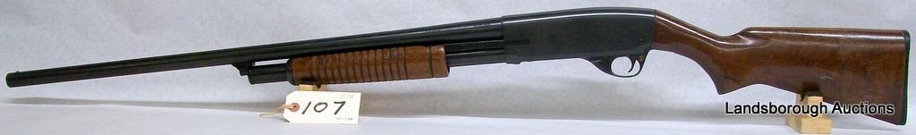 NON-RESTRICTED, PUMP ACTION, 12GA X 2 3/4", 28" BARREL WITH FIXED FULL CHOKE, SN NONE. WOOD HAS NUMEROUS MARKS IN FINISH, BLUING HAS LIGHT PITTING ALL OVER, BORE GOOD.