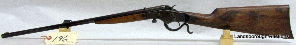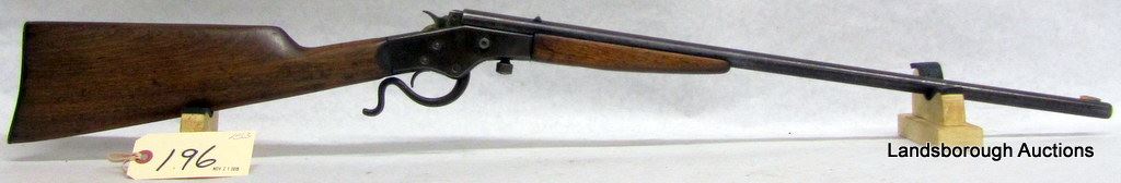 NON-RESTRICTED, SINGLE SHOT, 32 RIM FIRE, 22" BARREL, SN NONE. WOOD HAS A COUPLE DENTS AND A CRACK BEHIND RECIEVER, BLUING IS BROWN, BORE PITTED.