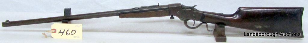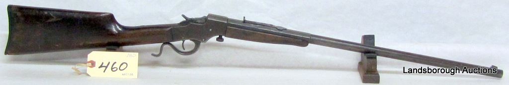 NON-RESTRICTED, SINGLE SHOT, 25 STEVENS, 22" BARREL, SN J9. WOOD HAS NUMEROUS MARKS AND CHIPPED TOE, BLUING IS BROWN, BORE IS PITTED WITH LITTLE RIFLING.
