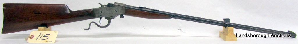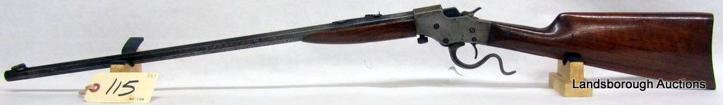 NON-RESTRICTED, SINGLE SHOT, 32RF LONG, 24" BARREL, SN U577. WRIST HAS A COUPLE CRACKS, BLUING IS PITTED AND MARKED, BORE PITTED.