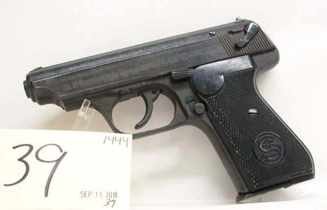 Prohibited, semi auto, 7.65mm, 83mm barrel, SN 341467, bakelite grips in good condition, bluing good, bore is very good