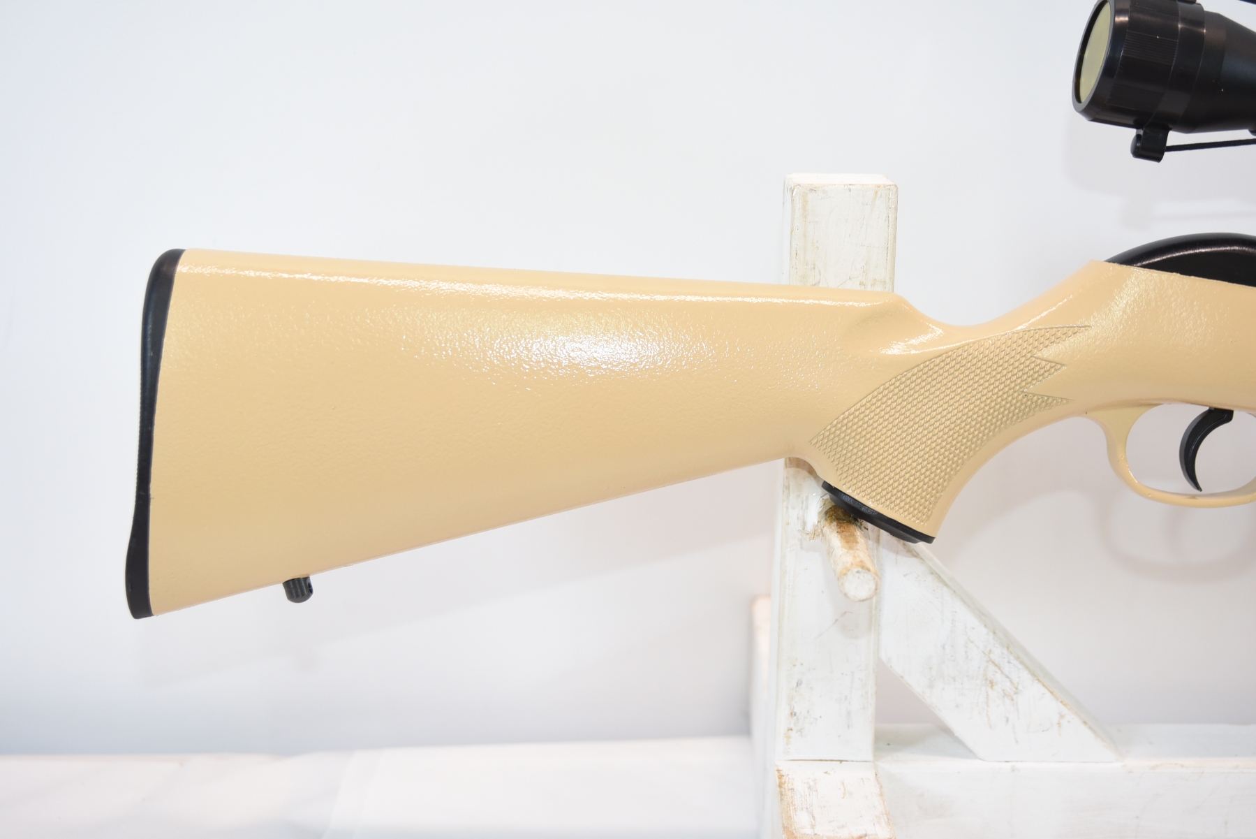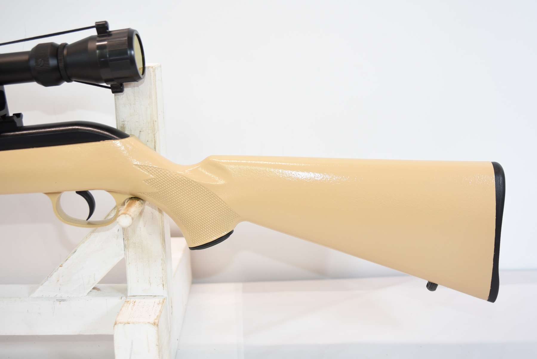 Synthetic stock has painted stock shows few light scuffs and scratches; condition excellent.