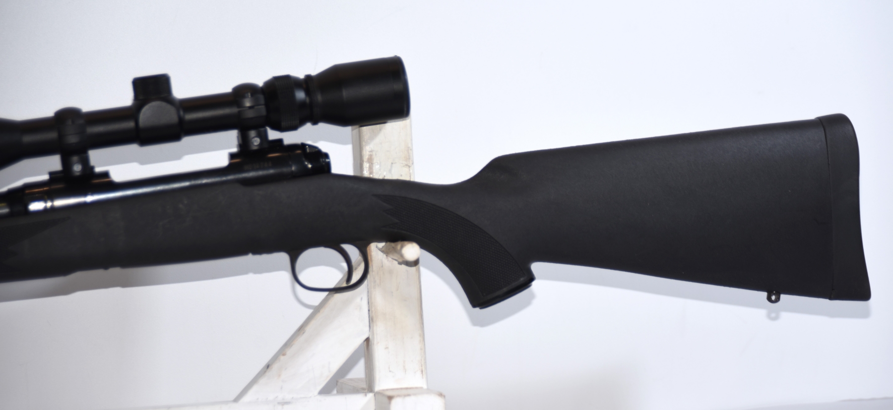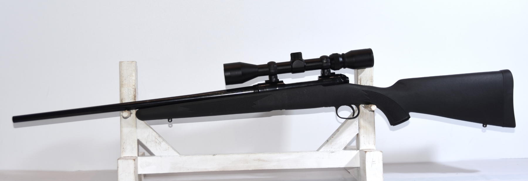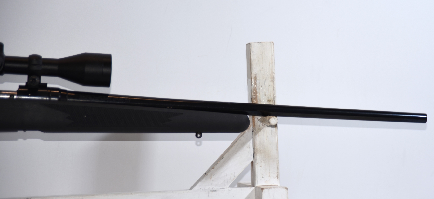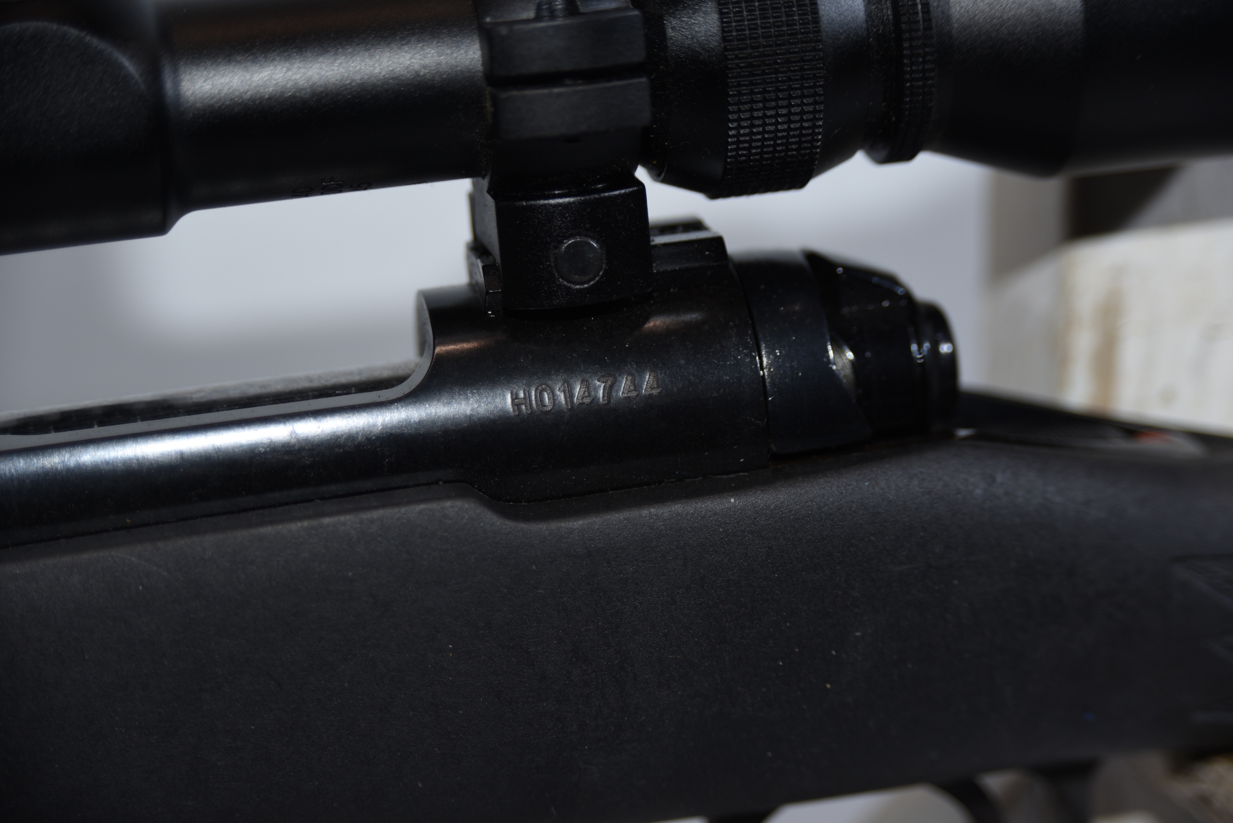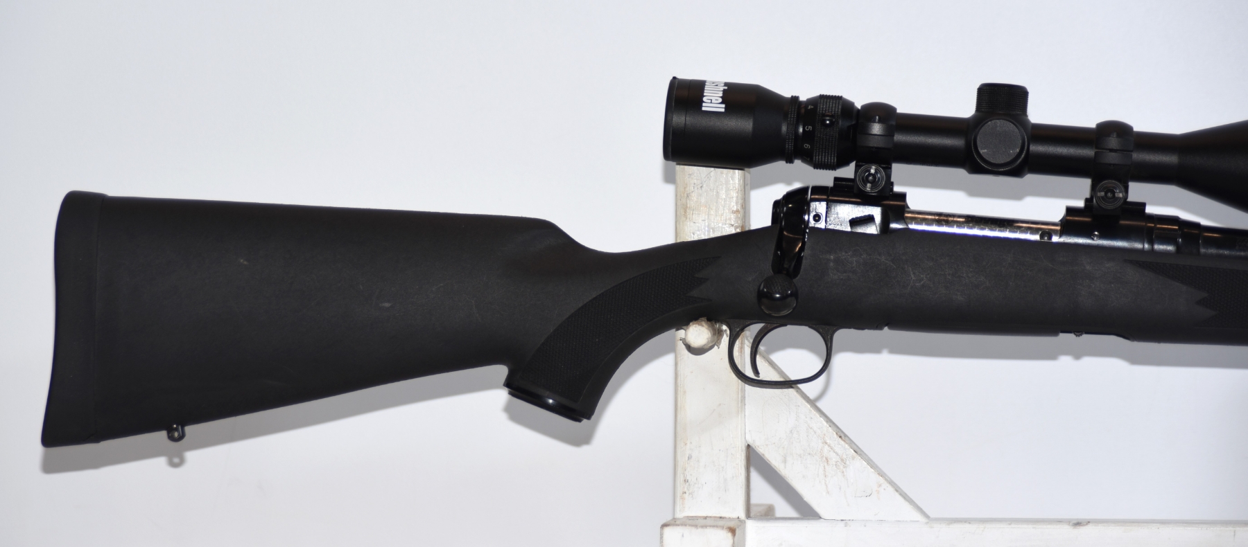 Synthetic stock shows scratches, scuffs, rubber butt pad is slight ripped at heel; condition is very good.