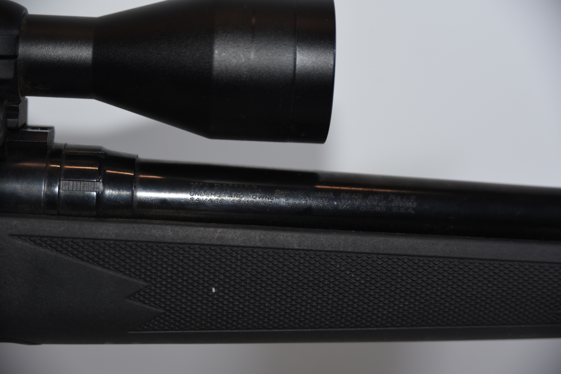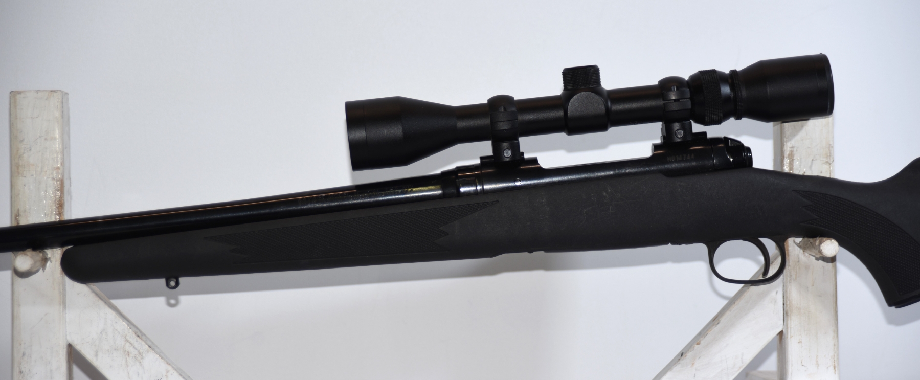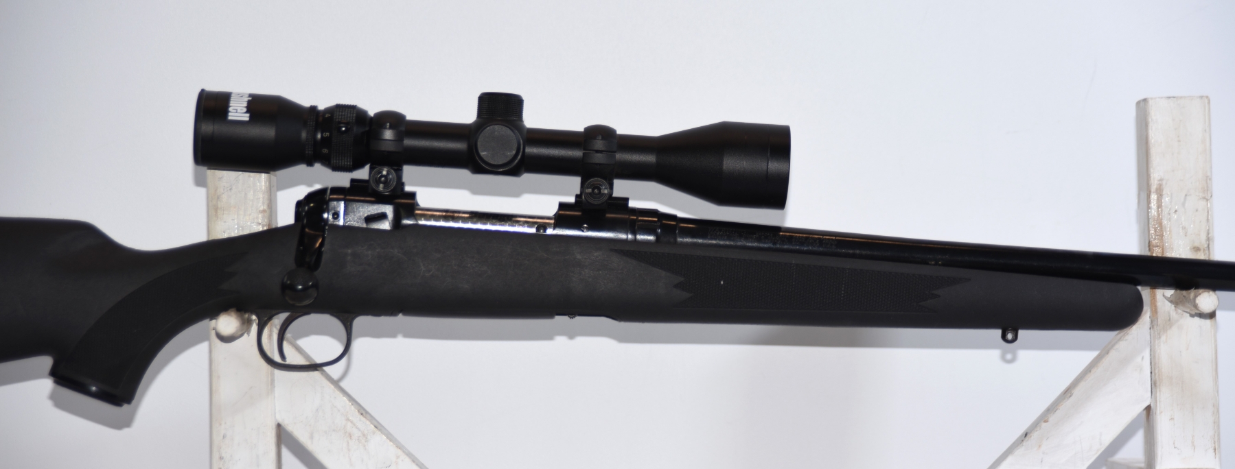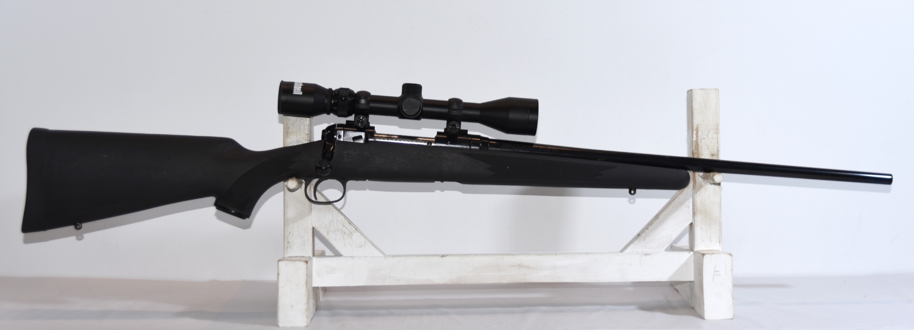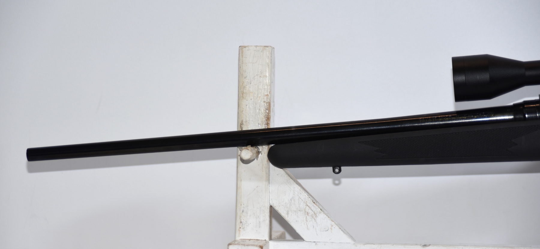 Synthetic stock shows scratches, scuffs, rubber butt pad is slight ripped at heel; condition is very good.