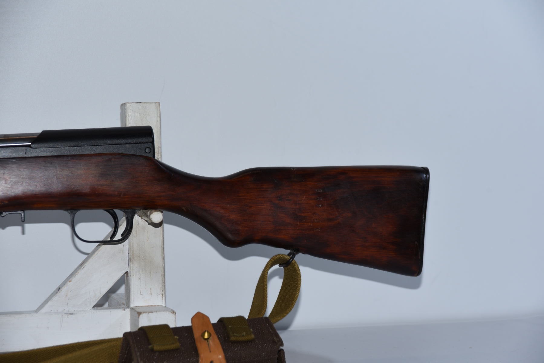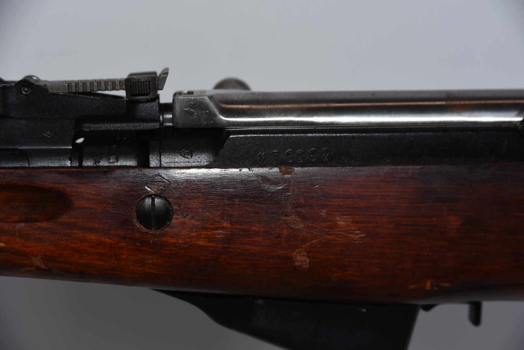 Wood stock shows scratches, scuffs, dents, finish wear spots; condition is very good.