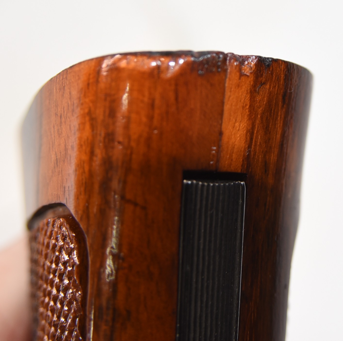 Wood grip show few small chips at the bottom, few scuffs; condition is excellent.