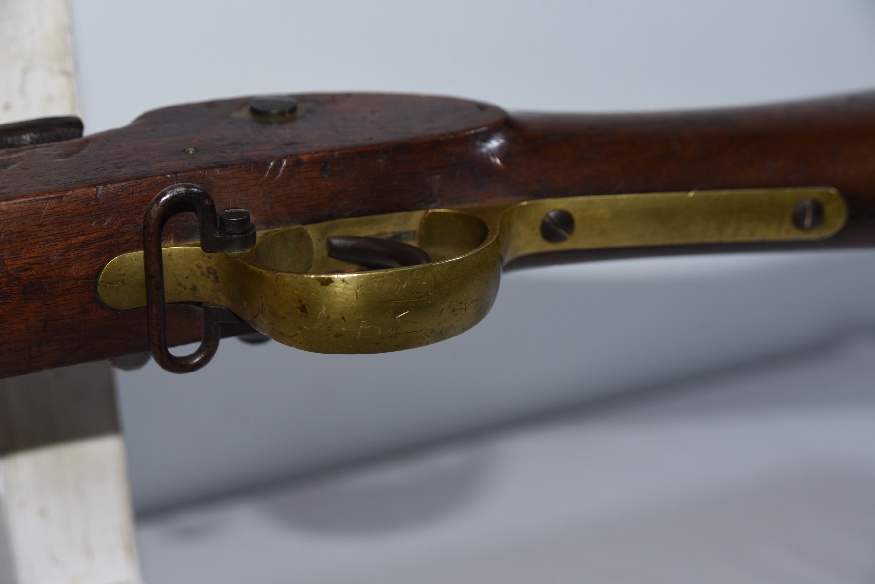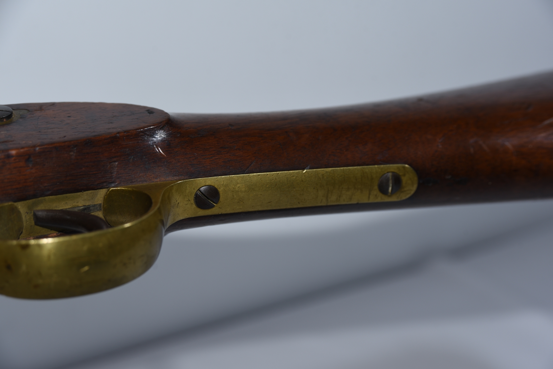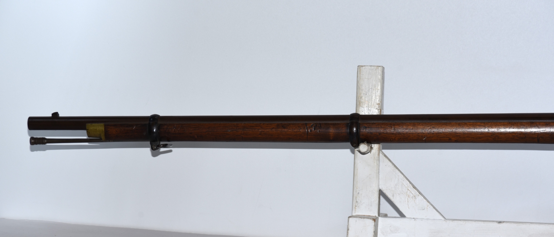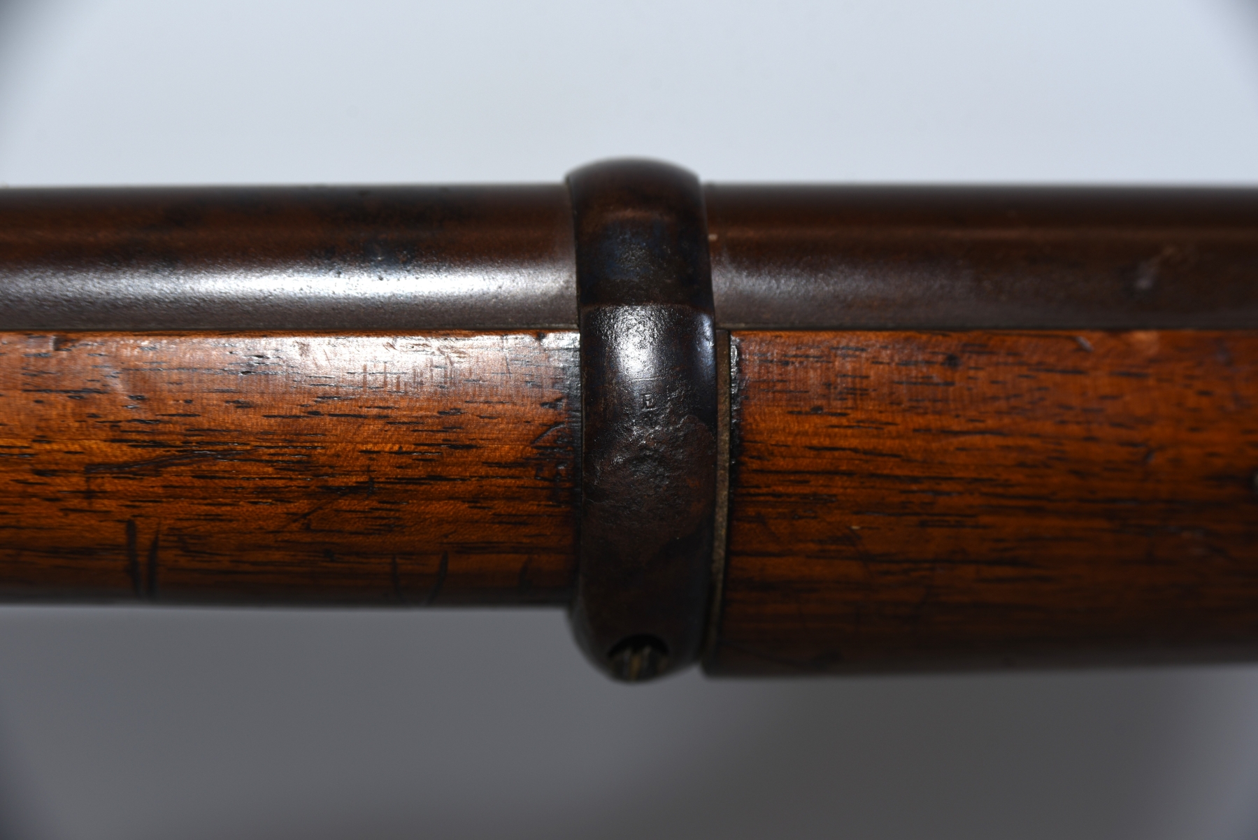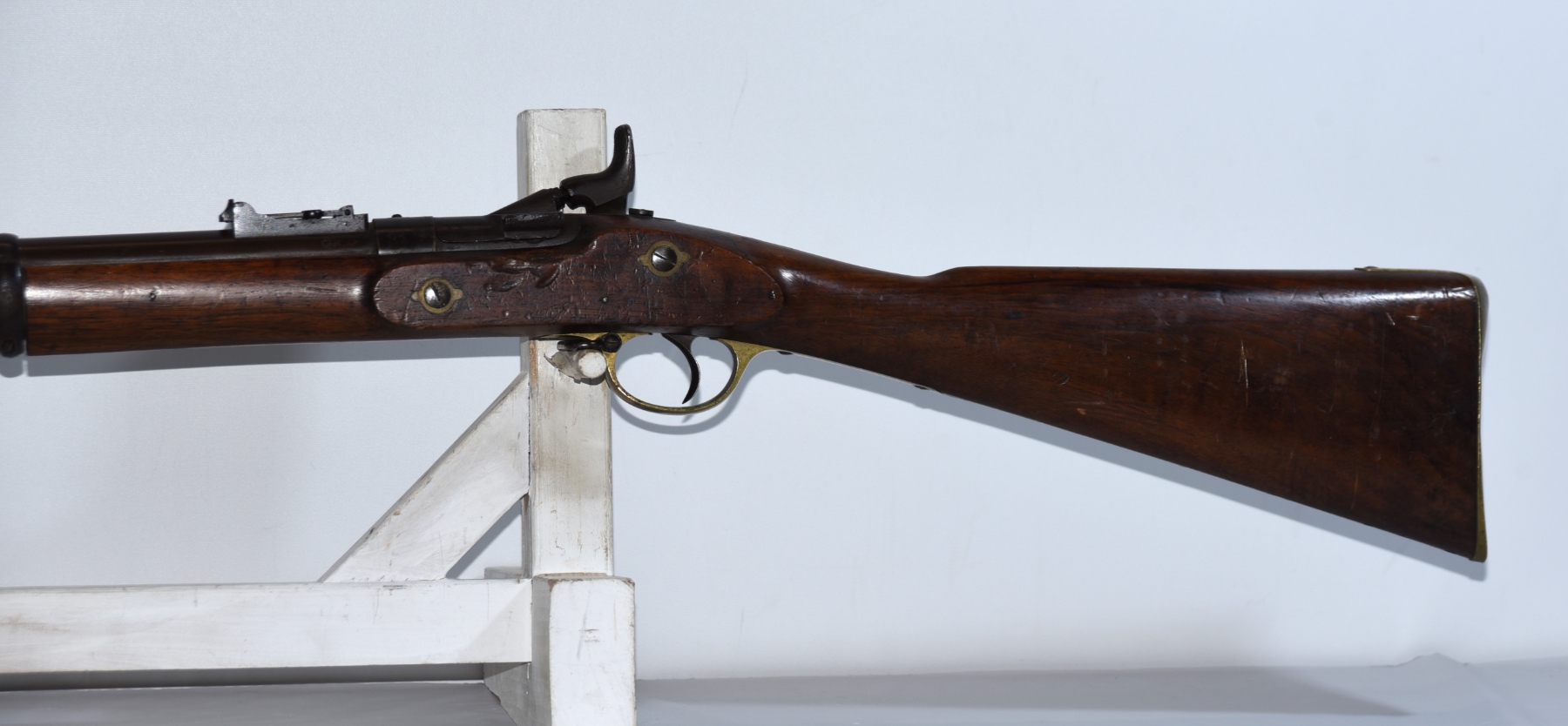 Wood shows scratches, scuffs, dents, few small chips, there are markings on the stock; condition is good for age.