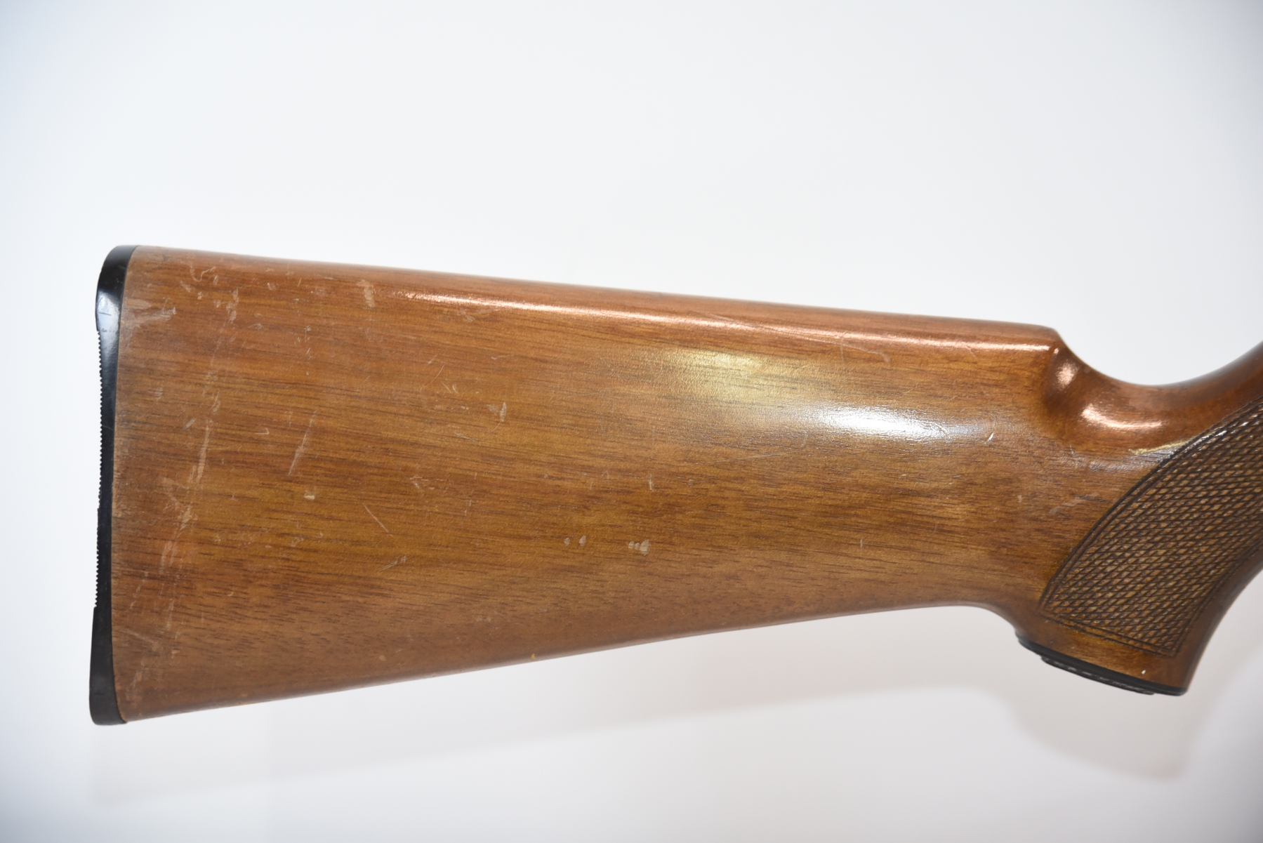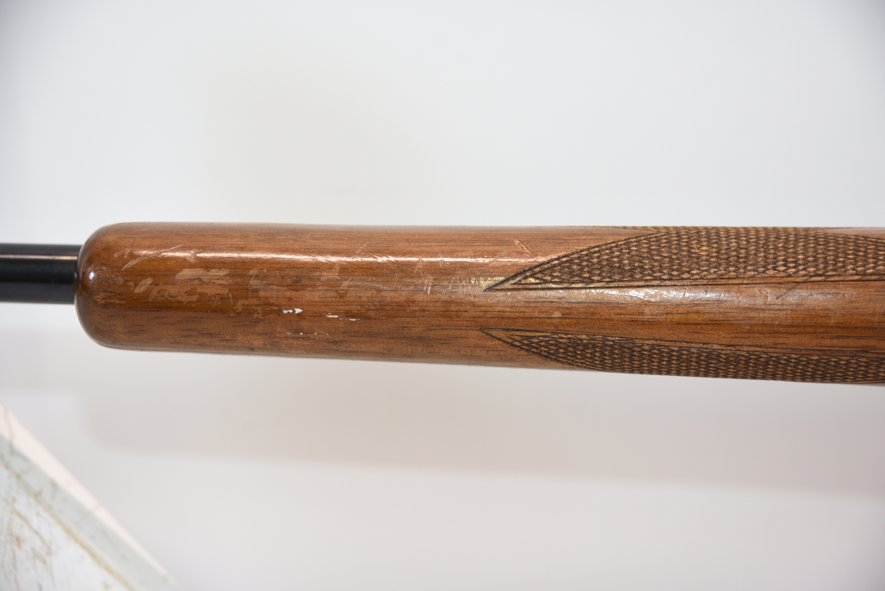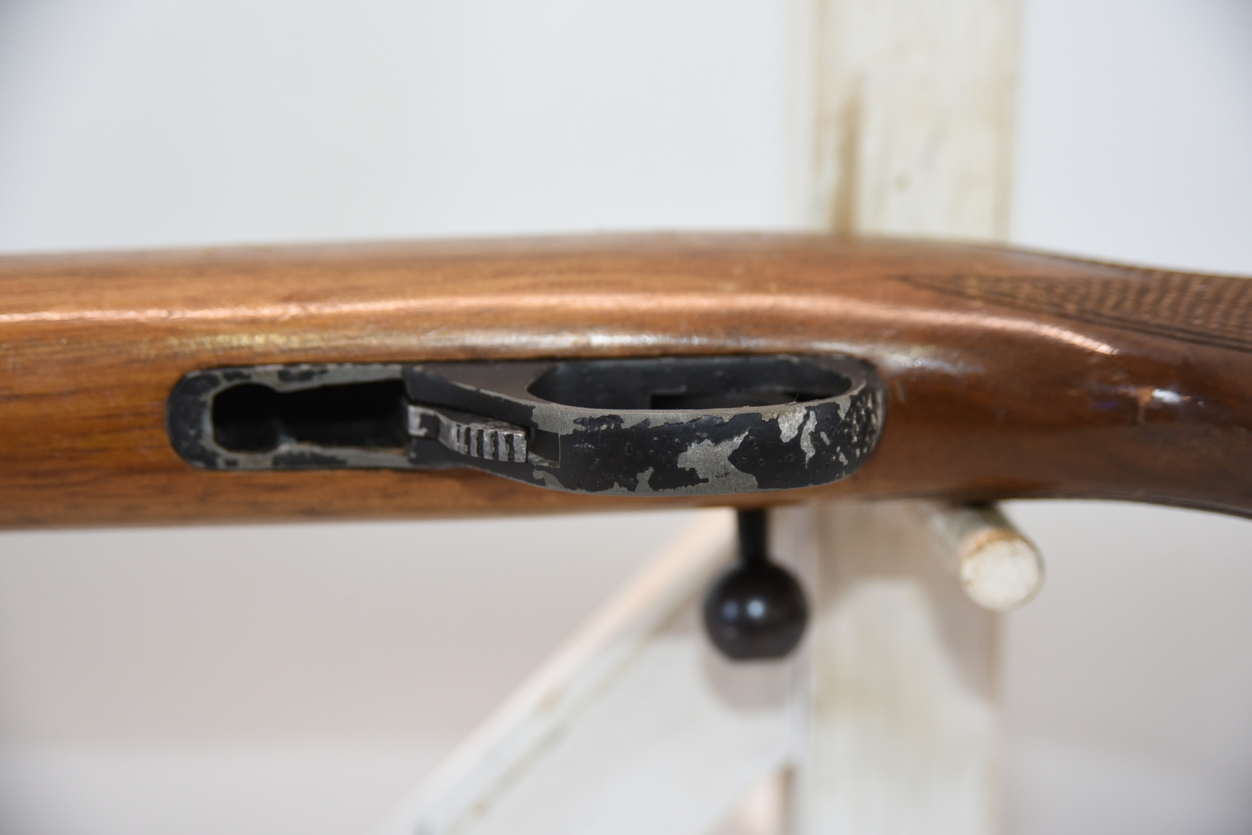 Wood stock shows scratches, scuffs, dents in various numbers throughout the stock; condition is good.