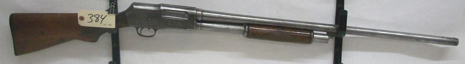 Non-restricted, pump action, 12 ga. 2 3/4", 28" barrel,SN U31619, Wood has a few dints and scratches as well as handling marks, bluing is completely grey, bore is fair plus