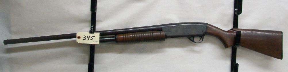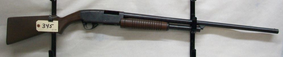 Non-Restricted, pump action, 12 gauge 2 3/4 inch, 28 inch fixed full choke barrel, Ser# none, wood in good condition with original finish flaking, blueing fair to good with some light pitting, bore is in good